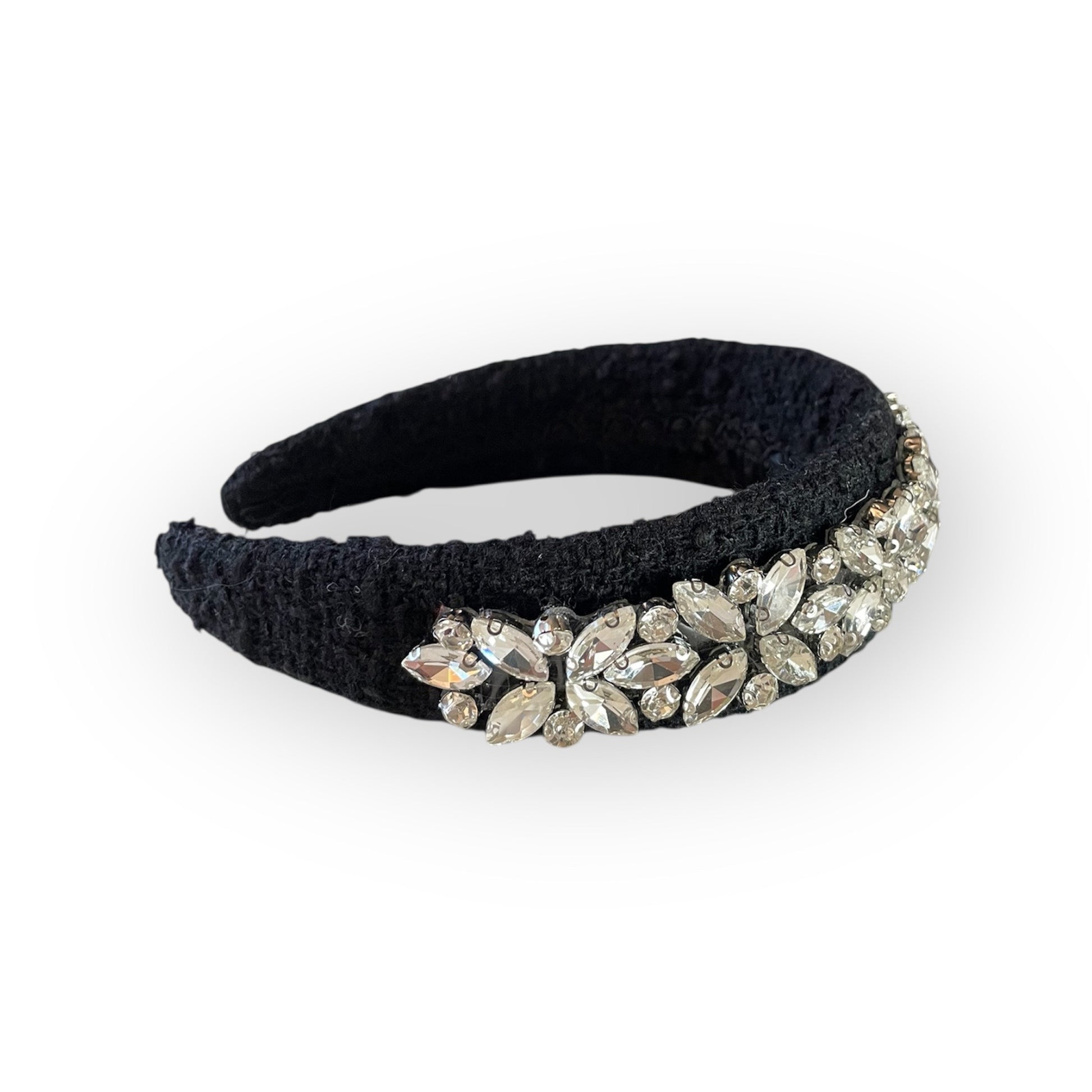 Fascia gioiello realizzata artigianalmente a mano, con strass applicati senza l’uso di colla. Non prodotta in serie, ogni pezzo presenta piccole differenze che ne esaltano l’unicità e l’autenticità artigianale.