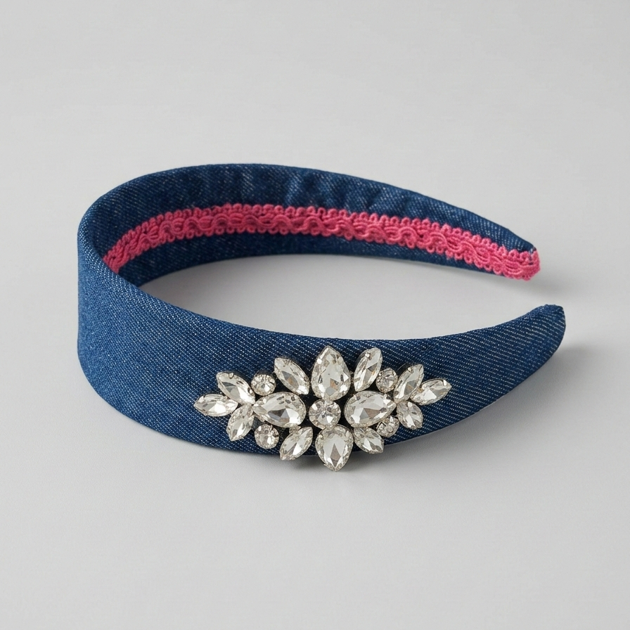 Fascia gioiello realizzata artigianalmente a mano, con strass applicati senza l’uso di colla. Non prodotta in serie, ogni pezzo presenta piccole differenze che ne esaltano l’unicità e l’autenticità artigianale.