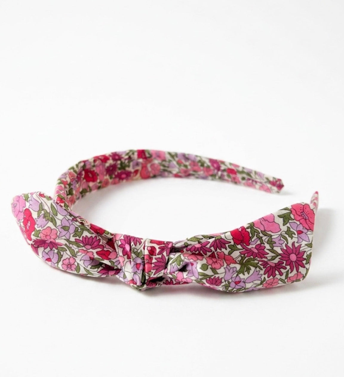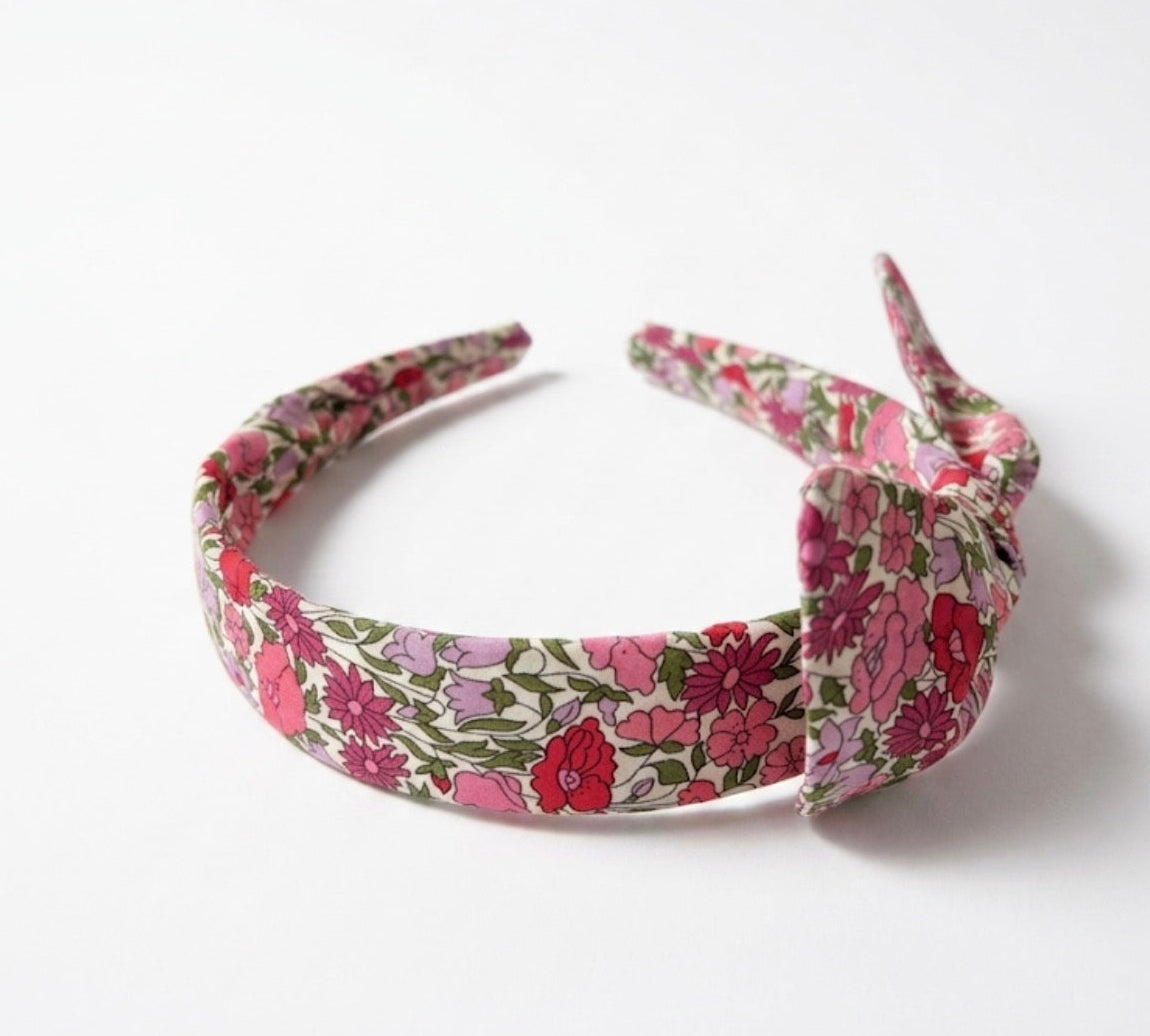 Cerchietto realizzato a mano con cura artigianale, impreziosito da un fiocco annodato e facilmente sfilabile, per offrire massima versatilità.