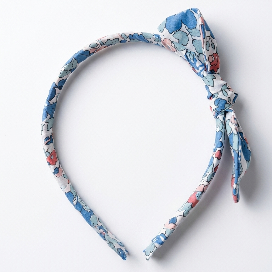 Cerchietto realizzato a mano con cura artigianale, impreziosito da un fiocco annodato e facilmente sfilabile, per offrire massima versatilità.