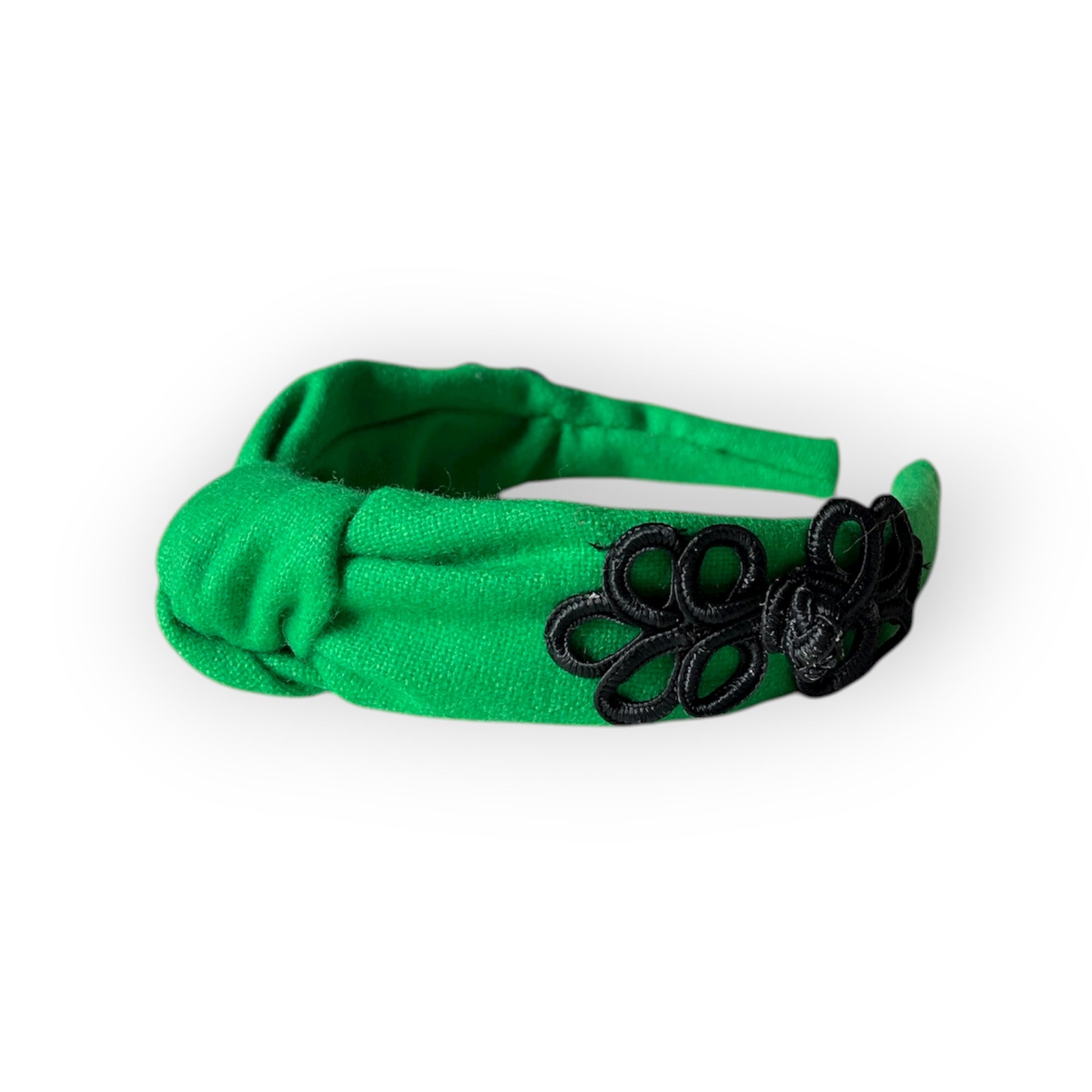Il cerchietto con nodo è caratterizzato da un nodo centrale, la cui dimensione varia in base alla tipologia di tessuto utilizzato: nei tessuti più spessi il nodo risulta più voluminoso, mentre nei tessuti più sottili appare più delicato.