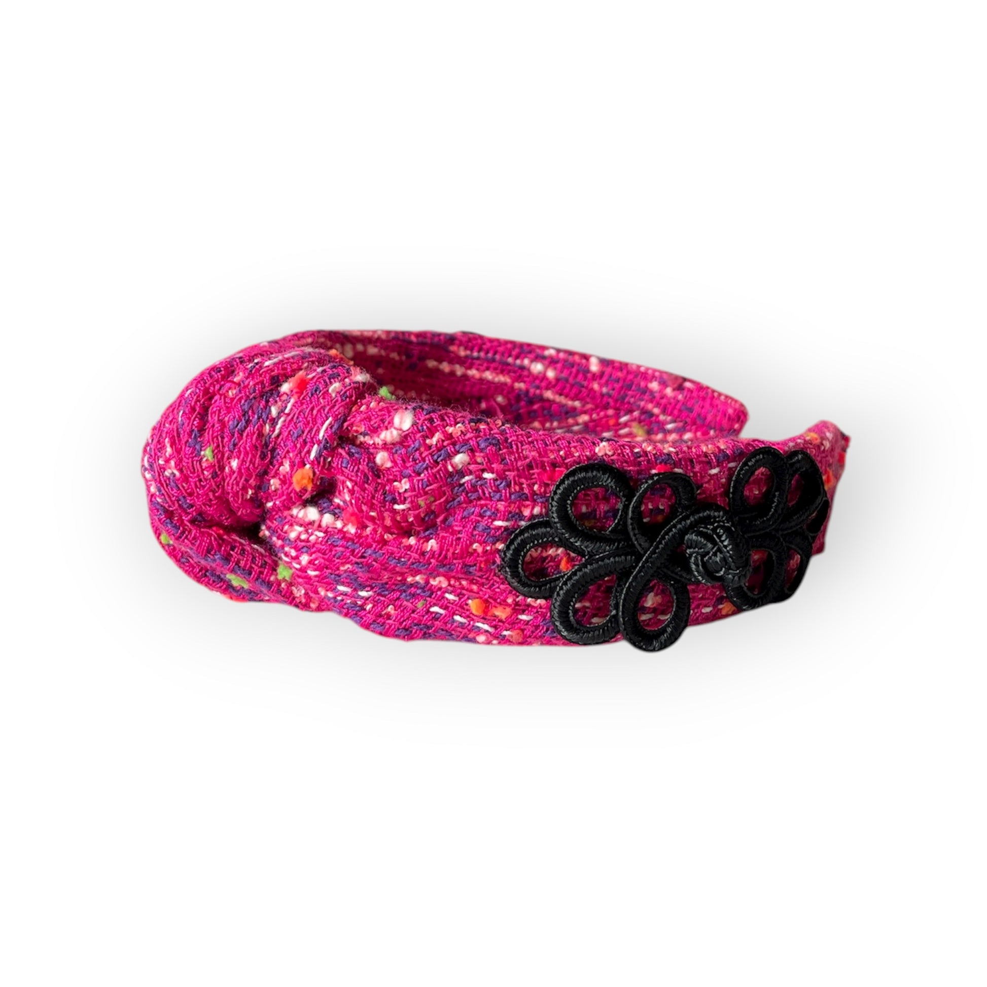 Il cerchietto con nodo è caratterizzato da un nodo centrale, la cui dimensione varia in base alla tipologia di tessuto utilizzato: nei tessuti più spessi il nodo risulta più voluminoso, mentre nei tessuti più sottili appare più delicato.