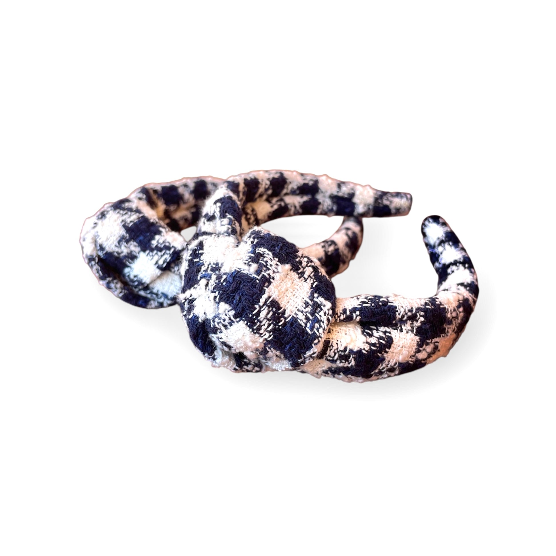 Il cerchietto con nodo è caratterizzato da un nodo centrale, la cui dimensione varia in base alla tipologia di tessuto utilizzato: nei tessuti più spessi il nodo risulta più voluminoso, mentre nei tessuti più sottili appare più delicato.