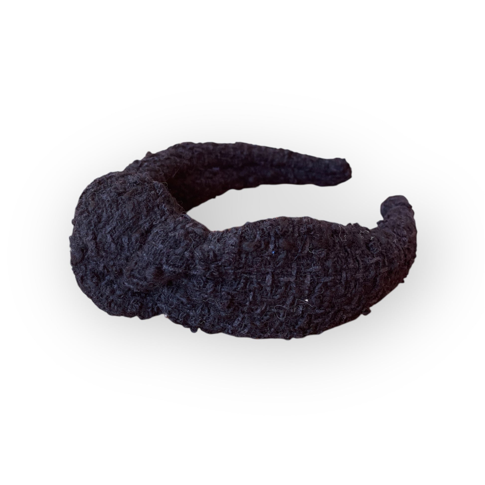 Il cerchietto con nodo è caratterizzato da un nodo centrale, la cui dimensione varia in base alla tipologia di tessuto utilizzato: nei tessuti più spessi il nodo risulta più voluminoso, mentre nei tessuti più sottili appare più delicato.