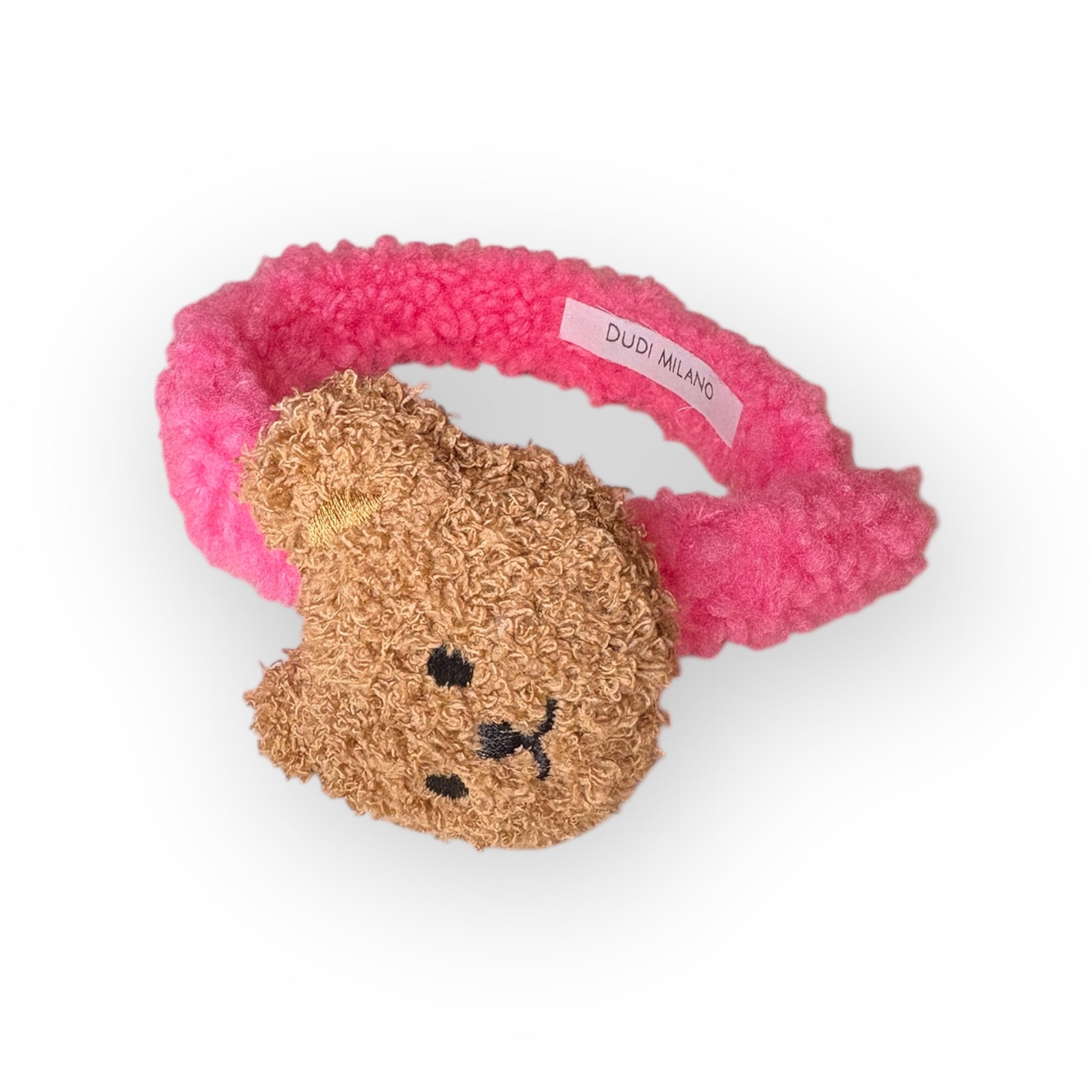Cerchietto per bambina realizzato artigianalmente a mano con tessuti Made in Italy. Confortevole e leggero, è impreziosito da un morbido orsetto laterale che dona un tocco delicato e raffinato, ideale per completare ogni look con dolce eleganza.