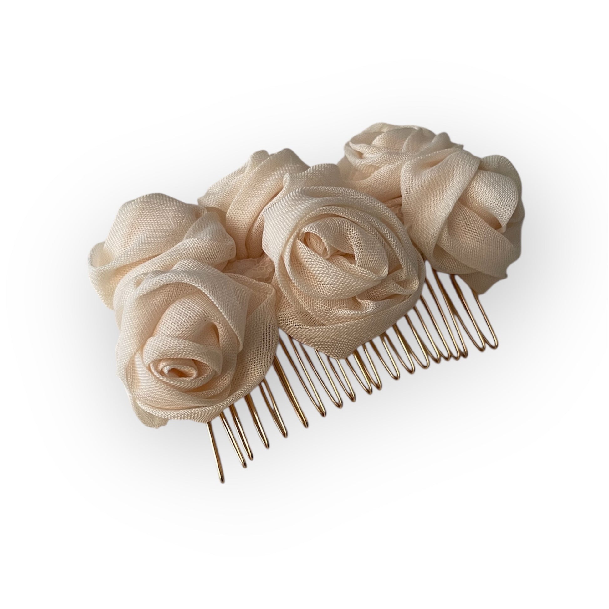 Pettinino realizzato con passamaneria di rose color bianco ecrù.